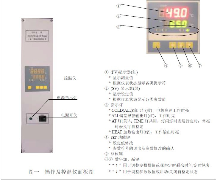 2.1 產品操作面板及控溫儀面板布置(見圖一);