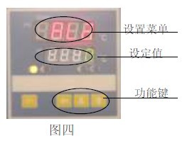 6.2(見圖四)當溫度到達:PV = SV + AL2時,即從高速轉為低速運轉,此時黃燈熄滅。