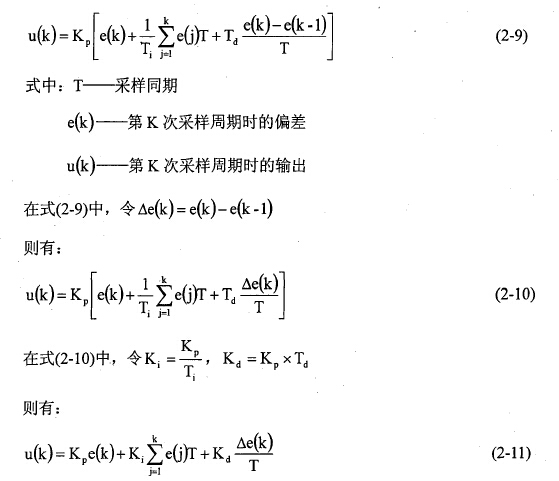 如果控制系統(tǒng)的硬件設(shè)計(jì)以微處理器為核心,那么該控制系統(tǒng)就是時(shí)間離散的控制系統(tǒng),它以采樣頻率對輸入和輸出量進(jìn)行實(shí)時(shí)采樣,所以PID控制器采用差分方程表示: